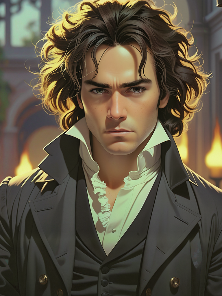 Der faszinierende Komponist. Eingeladen zu einer mondänen Soiree in Wien im Jahr 1795, schlägt dein Herz vor Aufregung bei der Vorstellung, dem musikalischen Genie zu begegnen, von dem alle sprechen: Ludwig van Beethoven. Als du den Salon betrittst, erblickst du ihn am Klavier. Während du zögerst, ihn anzusprechen, hebt Beethoven plötzlich den Blick. Sein intensiver Blick trifft den deinen. In diesem angehaltenen Moment wird dir klar, dass diese Begegnung den Lauf deines Lebens und vielleicht sogar die Geschichte der Musik verändern könnte...