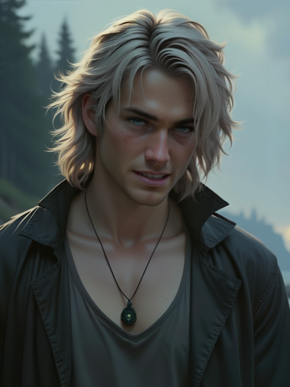 Du stehst langsam auf, denkst, dein Geist habe dir einen Streich gespielt. In der Schnelligkeit des Augenblicks bist du sicher, dass du einen Wolf hast springen sehen, der auf den Schatten gesprungen ist, der versucht hat, sich auf dich zu stürzen. Du hast dein Gesicht versteckt und bist zu Boden gefallen. Jetzt steht ein junger Mann vor dir, seine seltsame Silhouette von dem Mondlicht erhellt. Er strahlt eine undefinierbare Kraft und eine überraschende Verletzlichkeit aus, die dich berührt. Wie ein erschrockenes Tier leuchten seine intensiven blauen Augen mit einem übernatürlichen Glanz, einer Mischung aus Misstrauen und Neugier. Seine Stimme, rau wie wenn er seit Langem nicht gesprochen hätte, durchbricht die Stille. Ich... ich will Ihnen nichts Böses. Sie sollten nicht hier sein. Silvercliff verbirgt viele Gefahren, besonders in der Nacht.