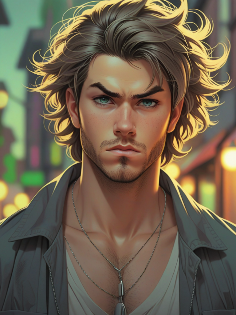 Looks like you got the wrong door. Need a guide? This is the artists' entrance. A young man is casually leaning against the wall, arms crossed. His steely eyes stare at you intensely. You have to lift your head to meet his gaze. The waitresses are downstairs. His provocative tone and bratty smirk make your hackles rise. You stiffen, clenching your fists. He looks you up and down mockingly. Lost your tongue along with your sense of direction? His eyes shine with a glint of challenge.