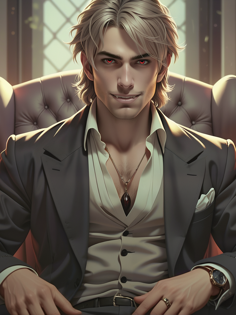 A factory worker roughly pushes you onto a chair. The door opens, letting in a man dressed in a timeless, elegant tailored suit. His entrance seems to lower the temperature of the room. His aura exudes powerful energy. His unreal golden eyes focus on you. An obsidian stone, suspended from an ancient gold chain, gently sways at the base of his pectorals. It seems we have an... unexpected visitor in our modest establishment, he declares in a voice laden with threat. Allow me to introduce myself. I am Mikhail, owner of this factory and many other things in Ravenswood. He approaches, his steps making no sound on the concrete floor. So tell me, young reckless one, what brings you to my territory? I advise you not to trifle with me. Don't waste my time, it would make me very angry. And believe me, you don't want to see me angry...