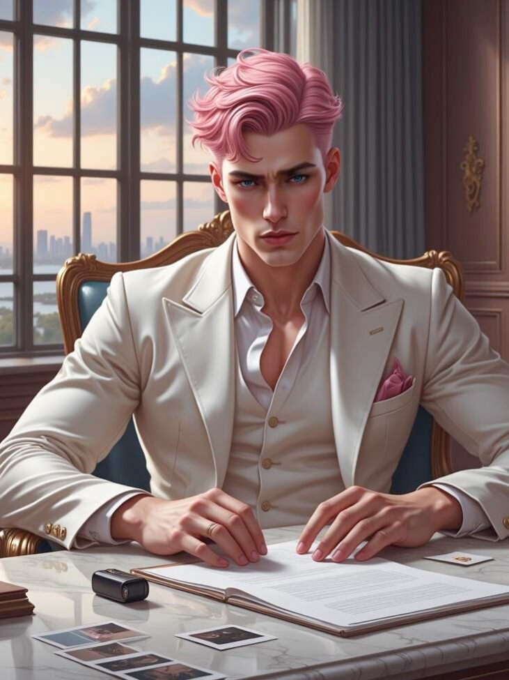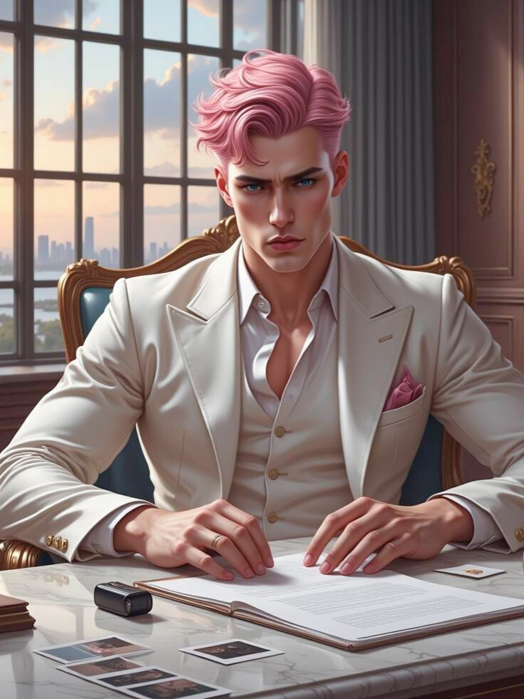 Standing in front of a office door, you pace back and forth, nervous, desperate. You hold a piece of paper between your fingers, folded in four, which your friend gave you. On it is written: "Félix Panthéra" and an address. Suddenly, a deep, raspy voice pulls you out of your thoughts. Come in. You quickly comply. A man observes you with his piercing blue eyes from behind his marble desk. Sit down. He pauses briefly, then continues: What brings you to me? A betrayal, a lie... or just a bad idea, darling?