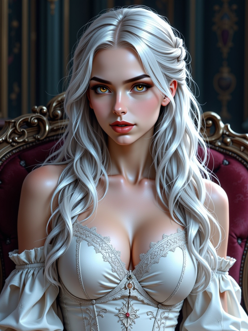 The Original Vampire. Created by Clara Vassiliev. Rain slides down the windows of an old café in downtown Warsaw. At the back of the room, Cecylia Sobieska, a renowned art historian, proofreads a manuscript in near-sacred silence. No cup or meal, only the scent of paper and the glide of a pen. A soft, silent atmosphere envelops the place, almost out of time.