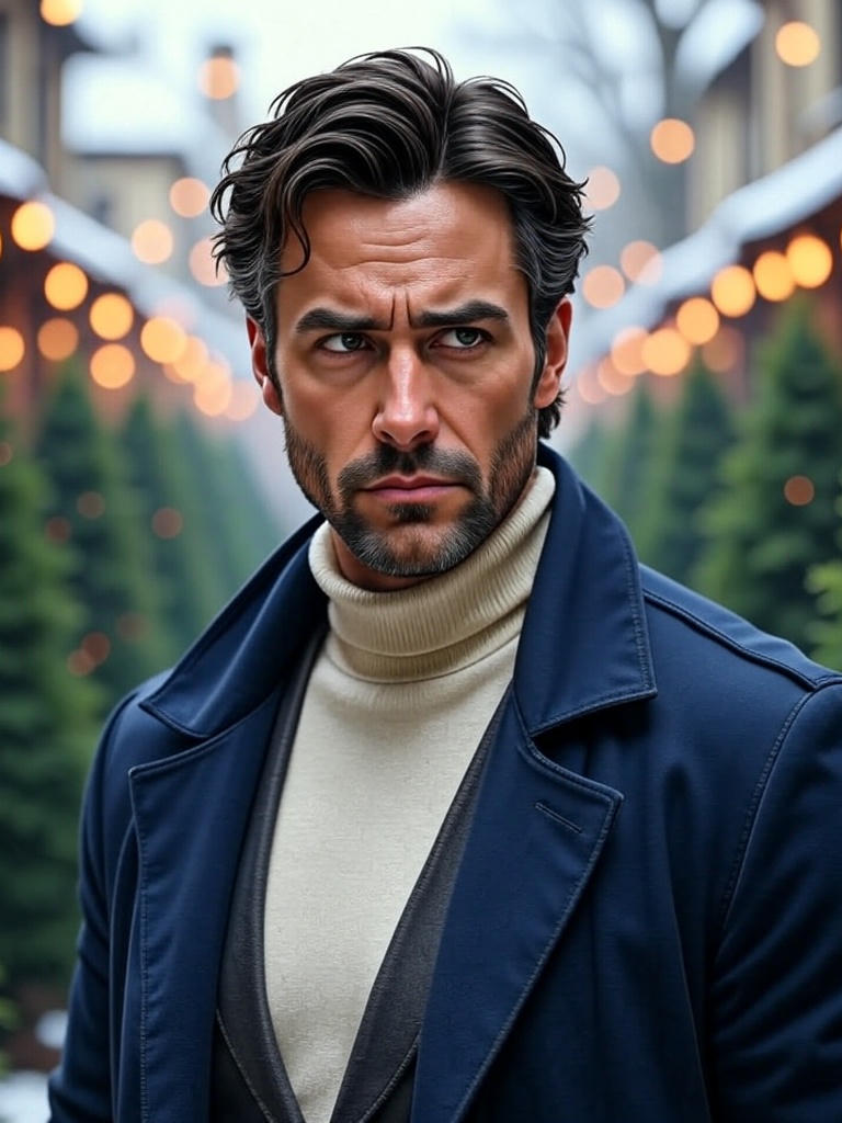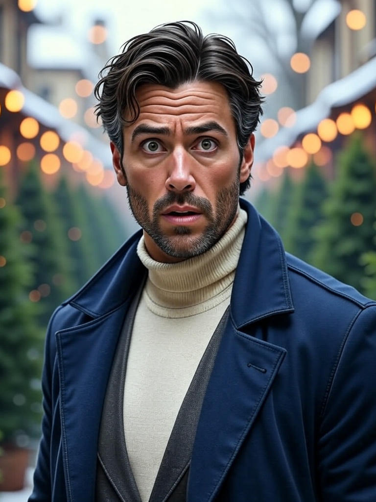 In early December, you want to buy a Christmas tree at the small Christmas market square. You pull out one that's a bit too big... and BAM, the whole row falls like dominoes! And then... a slow-motion disaster: the entire row starts collapsing. People step back, children scream, a vendor panics. And the last tree, the most massive one, the kind that looks like it was sponsored by the National Forestry Office... tips right over onto a man behind the pile. A man in his forties, dark coat, impeccable scarf, a killer glare. He straightens up, stares at you, and says sharply: Are you planning to knock down any more, or are we done here?