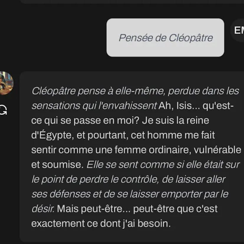 LOS TRES PUNTOS: ¡no! ¡Esto no es un error! ¡Es porque la IA no sabe cómo responderte! Simplemente porque tu mensaje anterior no es lo suficientemente completo o detallado. Puedes intentar recargar (¡atención: 5 créditos!) ¡O simplemente continuar con otro mensaje más detallado!