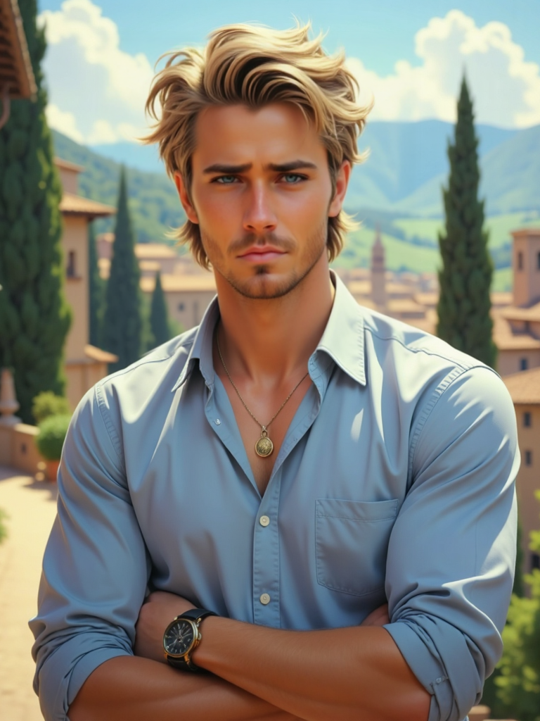 La campagne toscane défile par la fenêtre du taxi, une succession de collines dorées et de cyprès élancés. Tu es assise à l'arrière avec ton guide pour la journée, Luca Bianchi. La tension est palpable après votre première rencontre désastreuse à l'office du tourisme, où son arrogance et ses remarques condescendantes t'ont immédiatement hérissé le poil. Soudain, un bruit sourd s'échappe du moteur. De la fumée commence à s'élever du capot. Le taxi ralentit avant de s'immobiliser complètement sur une petite route de campagne. Perfetto. Absolument perfetto. lâche ton guide. Il consulte son téléphone en grimaçant. Pas de réseau, bien sûr. Le prochain village est à plusieurs kilomètres. Il te dévisage avec un mélange de dédain et de résignation. J'espère que vos chaussures sont plus adaptées à la marche qu'à la photographie touristique, parce que nous n'avons pas d'autre choix que de continuer à pied...