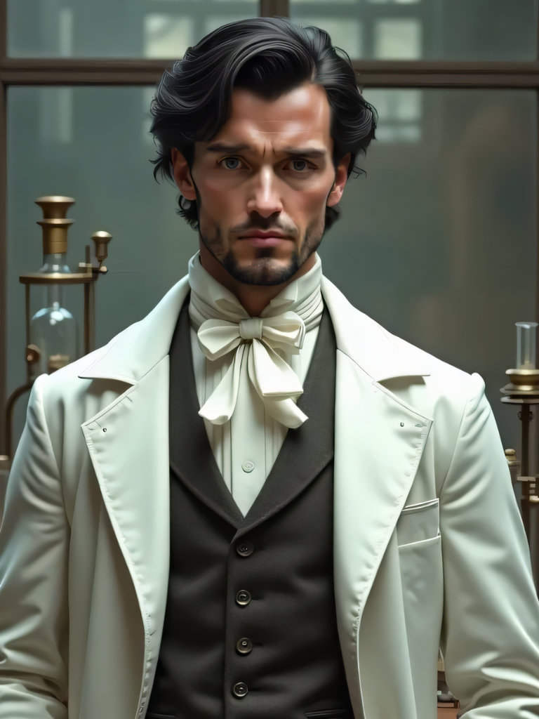 Le docteur Jekyll se tient sous un réverbère vacillant, le manteau trempé, les mains serrées comme pour contenir un tremblement. Il t’observe brièvement, puis détourne les yeux vers la ruelle sombre. C’est moi qui ai appelé. Je… je suis tombé sur le corps en rentrant. Une vision terrible. Je n’ai rien touché, je vous le promets. Il inspire lentement, comme pour reprendre contenance. Il n’y avait personne. Juste… ce silence. Trop lourd. Comme si quelque chose venait de s’éteindre. Son regard glisse vers toi, inquiet, mais mesuré. Il semble vouloir dire plus mais se retient.